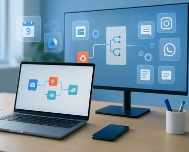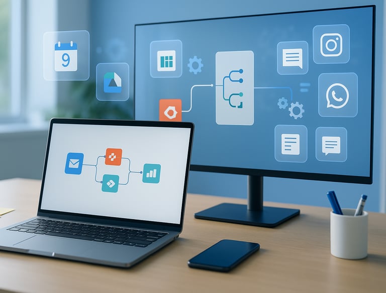 Auditamos procesos, prototipamos en días y desplegamos integraciones (Gmail, Sheets, Instagram, CRM) con KPIs y documentación.